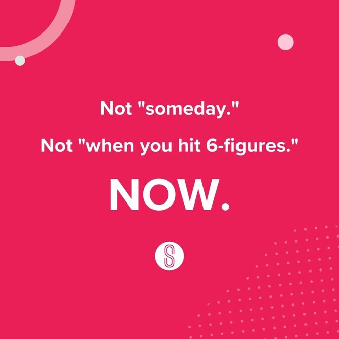 Not “someday.” Not “when you hit 6-figures.” Now.