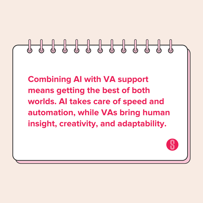 Combining AI with VA support means getting the best of both worlds. AI takes care of speed and automation, while VAs bring human insight, creativity, and adaptability.